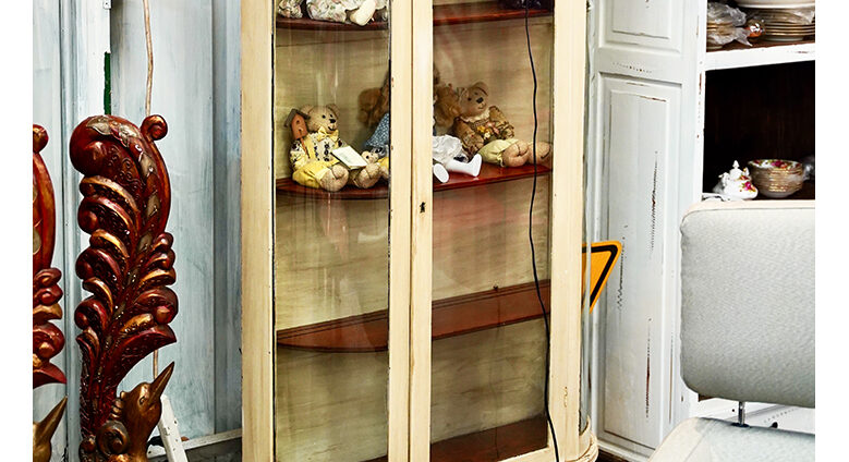 Antique Painted Oak Round China Cabinet Painted Soft Green Original Glass