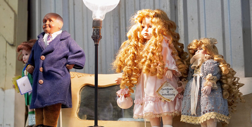 BEAUTIFUL 23″ TALL PORCELAIN DOLL WITH PINK LACE DRESS AND RIBBONS