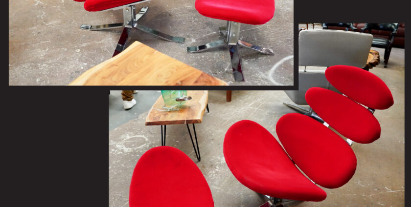 Poul Volther Corona Red Lounge Swivel Chrome Chair and Ottoman Erik Jorgensen